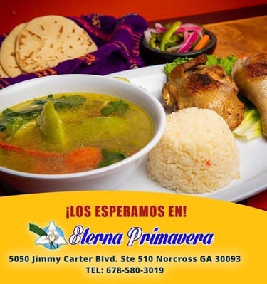 At La Eterna Primavera, we offer a family-friendly atmosphere that’s warm and welcoming. Here, you’ll receive excellent service and enjoy truly delicious food. Our flavor—the authentic, homemade, unmistakably Guatemalan sazón—is what makes us unique, and what has made our restaurant a favorite gathering place for the Guatemalan community in the United States, who make up the majority of our visitors.