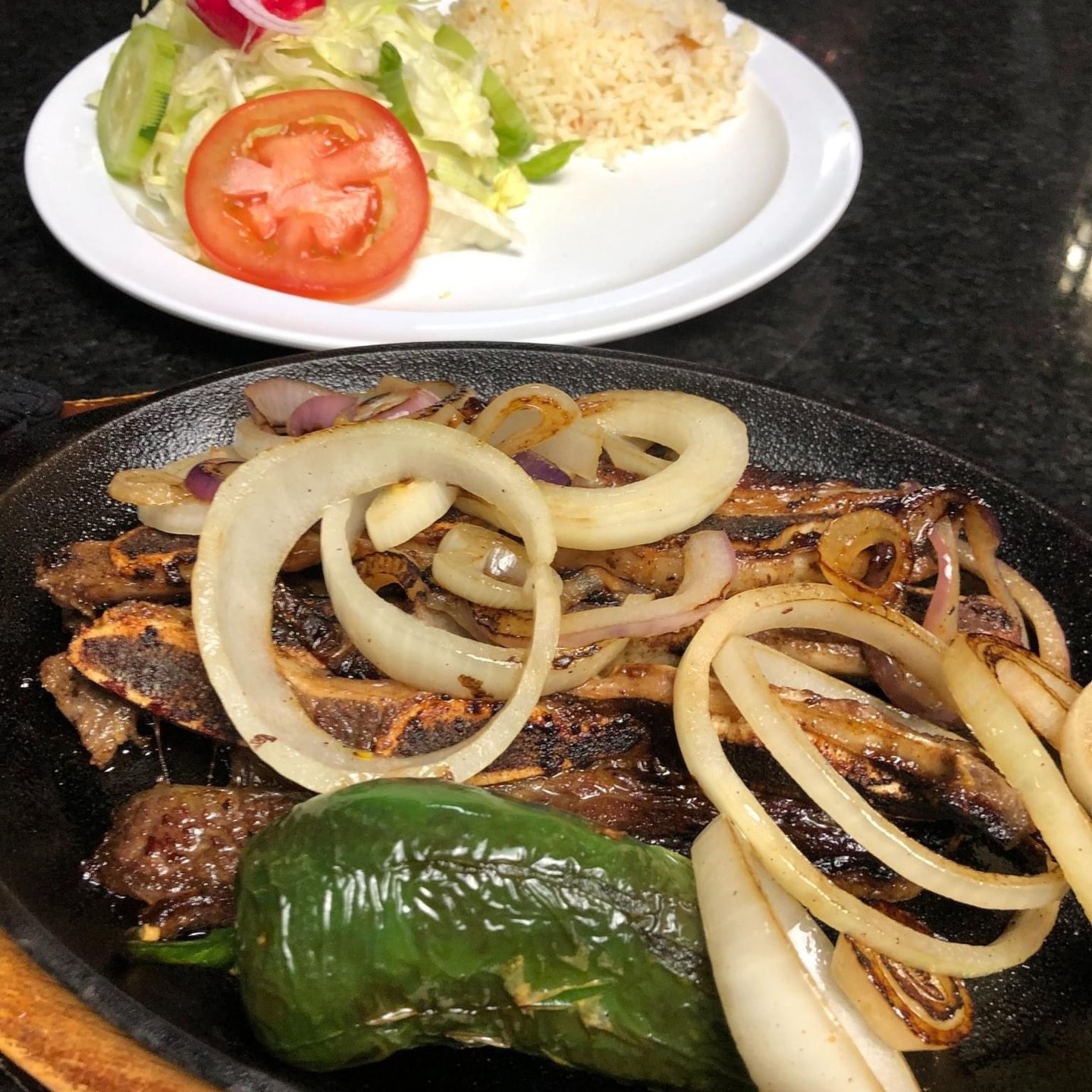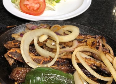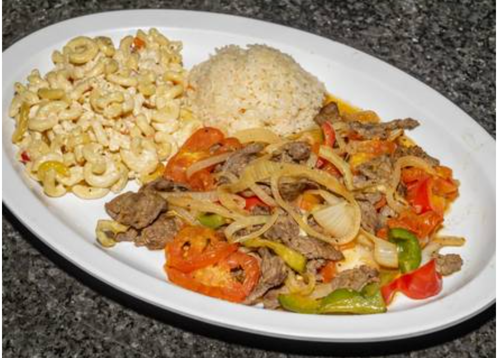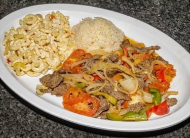Bistec, arroz y ensalada