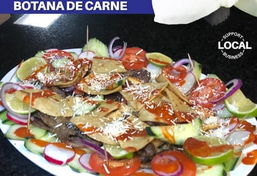 Botanas de res, pollo y camarones